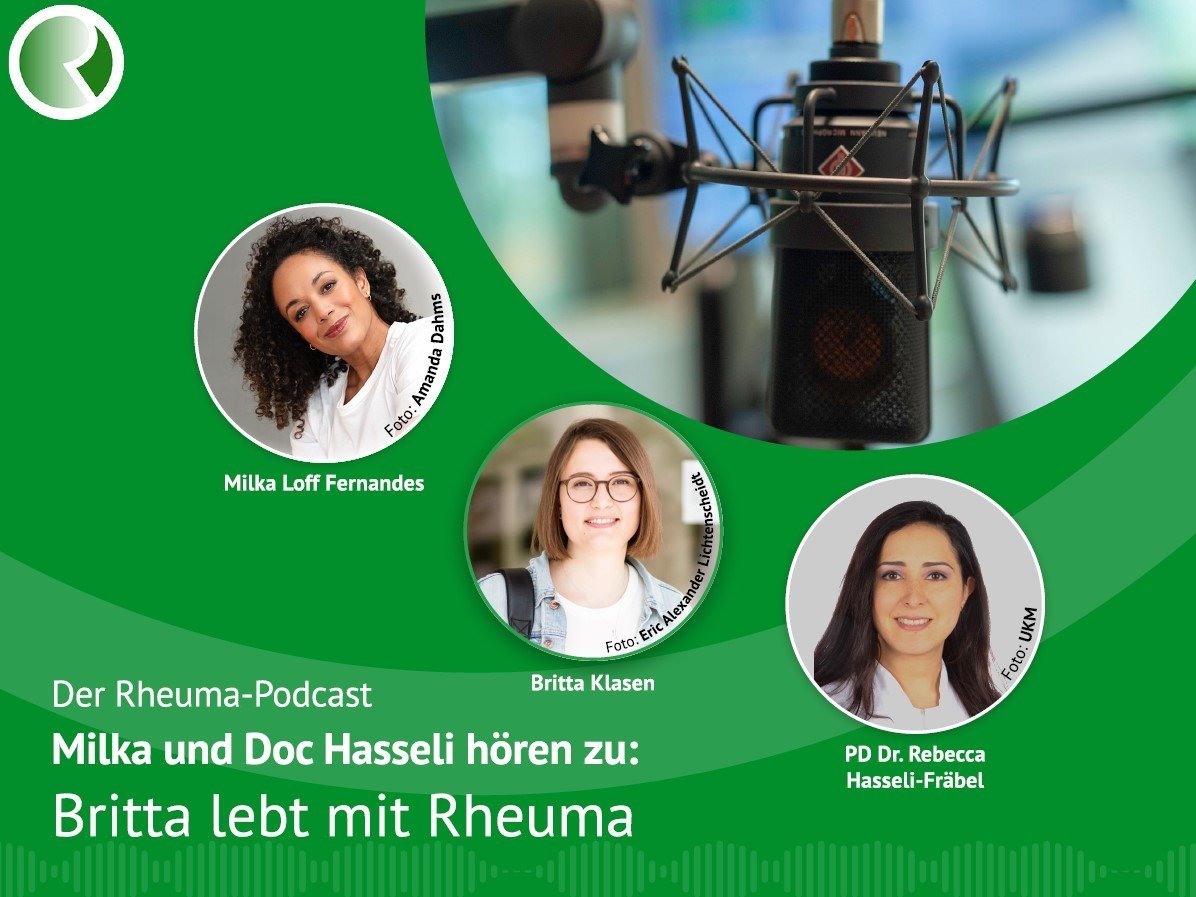 Britta Klasen war erst 12, als sie an Rheuma erkrankte. Im Rheuma-Podcast spricht sie darüber mit Milka Loff Fernandes und Dr. Rebecca Hasseli-Fräbel.